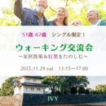 40代, 50代, 60代, ウォーキング, ウォーキング交流会, シングル限定, 恋活, 趣味, 趣味de繋がる, 趣味友, 趣味恋