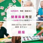 5/13(火)《 未経験者さん大歓迎★はじめよう!健康麻雀♪》50代60代☆100年人生たのしむ!おとなの麻雀教室 in 銀座♪