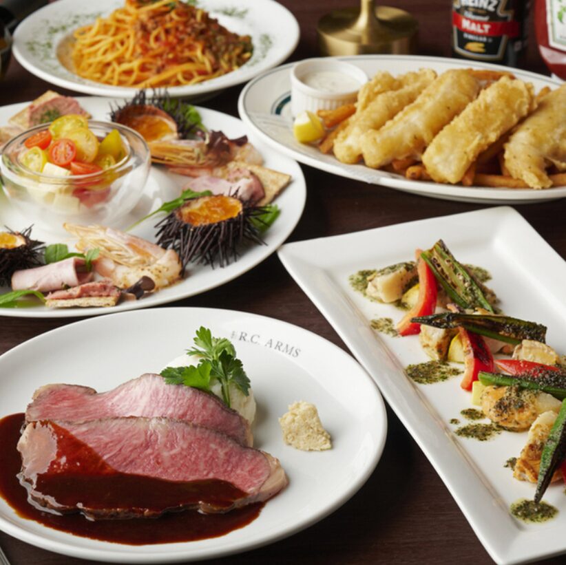 本場イギリスのパブを感じる空間で、ビール片手にスタンディングでお疲れ様の1杯、夕食にワインと美味しい料理の数々、みんなで個室でパーティー、夜はバーカウンターでジントニック。スィーツやカクテルも充実。