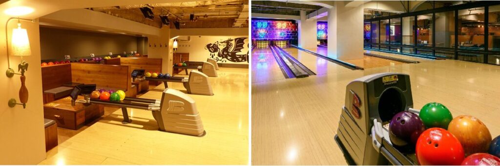 木目を基調とした、明るく温もりあるナチュラル空間。全レーンにオートバンパーを完備しており、ボウリング初心者の方や小さなお子さまも安心して楽しめます。シンプルな照明の中、ボウリング本来の楽しさを味わえるスタンダードなフロアです。