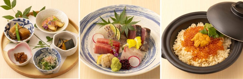 ご宴席を鮮やかに彩るのは、豊洲直送の魚介をはじめ、確かな目利きで選び抜いた食材を使った京都のおばんざい。料理人が心をこめた逸品を、ぜひご堪能ください。