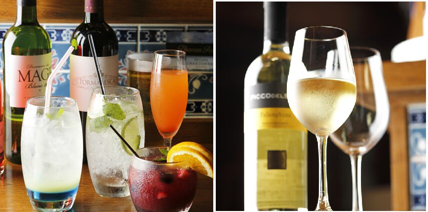 ビール ワイン(赤・白) スパークリングワイン サングリア(赤・白) カシス(ソーダ・カクテル) モヒート ハイボール 焼酎 など